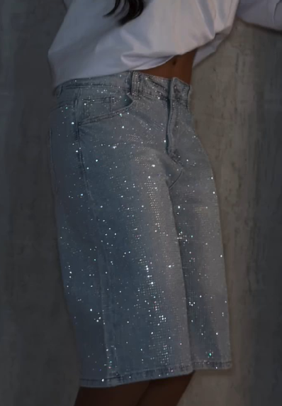 Starry Glitter Denim Baggy Bermuda Shorts