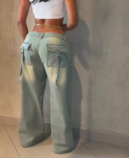 Baggy Jeans with Cargo Pockets On The Back