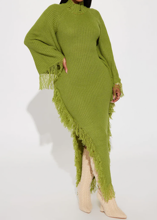 Crewneck Batwing Sleeve Tassel Knit Dress