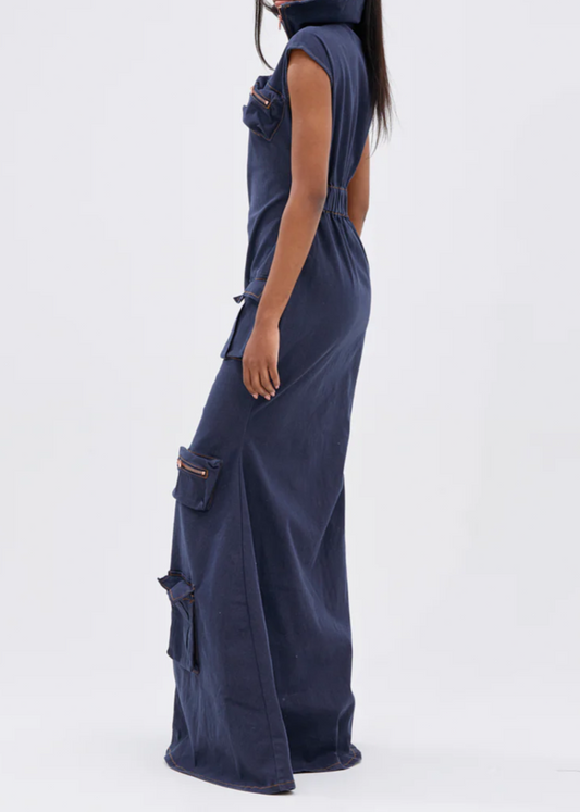 "Don't Mess with Me" Collared Denim Maxi Dress