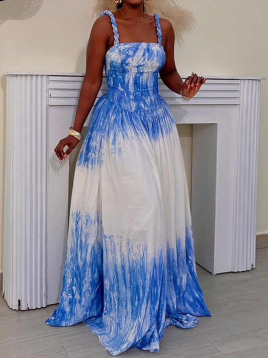 Sleeveless Long Tie Waist Single Breasted Denim Dress