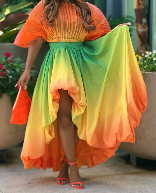 Three-Piece Gradient off-the-shoulder Swimsuit with Beach Skirt