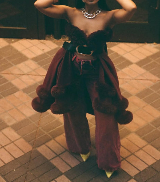 Palace Herringbone Vest & Velvet Pleated Skirt Set