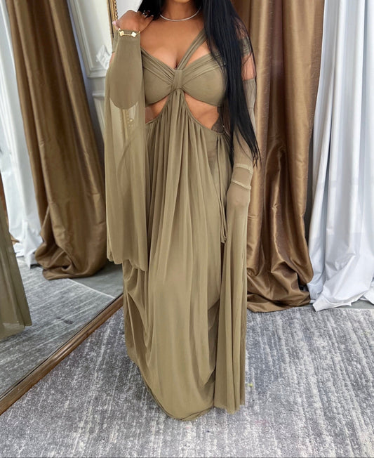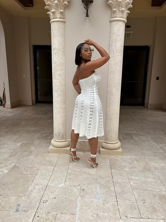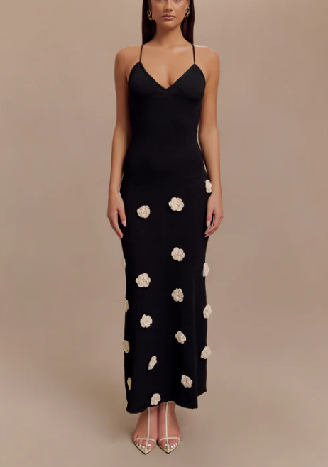 3D Flower Knitted Backless Lace-Up Hip-Pack Long Dress