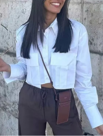 Asymmetric Cropped Shirt With Exposed Navel