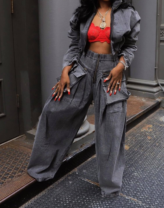 Zip-up Top & Jeans With Large Pockets