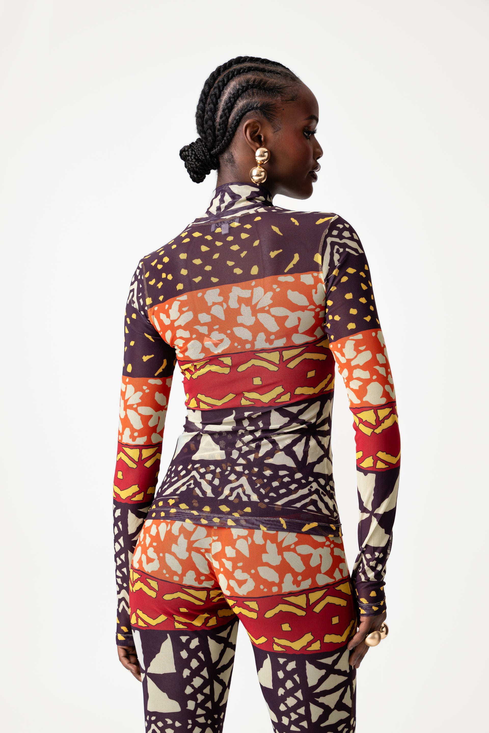 The Anu Burgundy Turtle neck Mesh Set features a flattering high neckline and long sleeves for a dramatic look. Made from printed mesh, it offers a comfortable, stretchy fit and a lightweight, unlined design, perfect for layering or wearing solo.