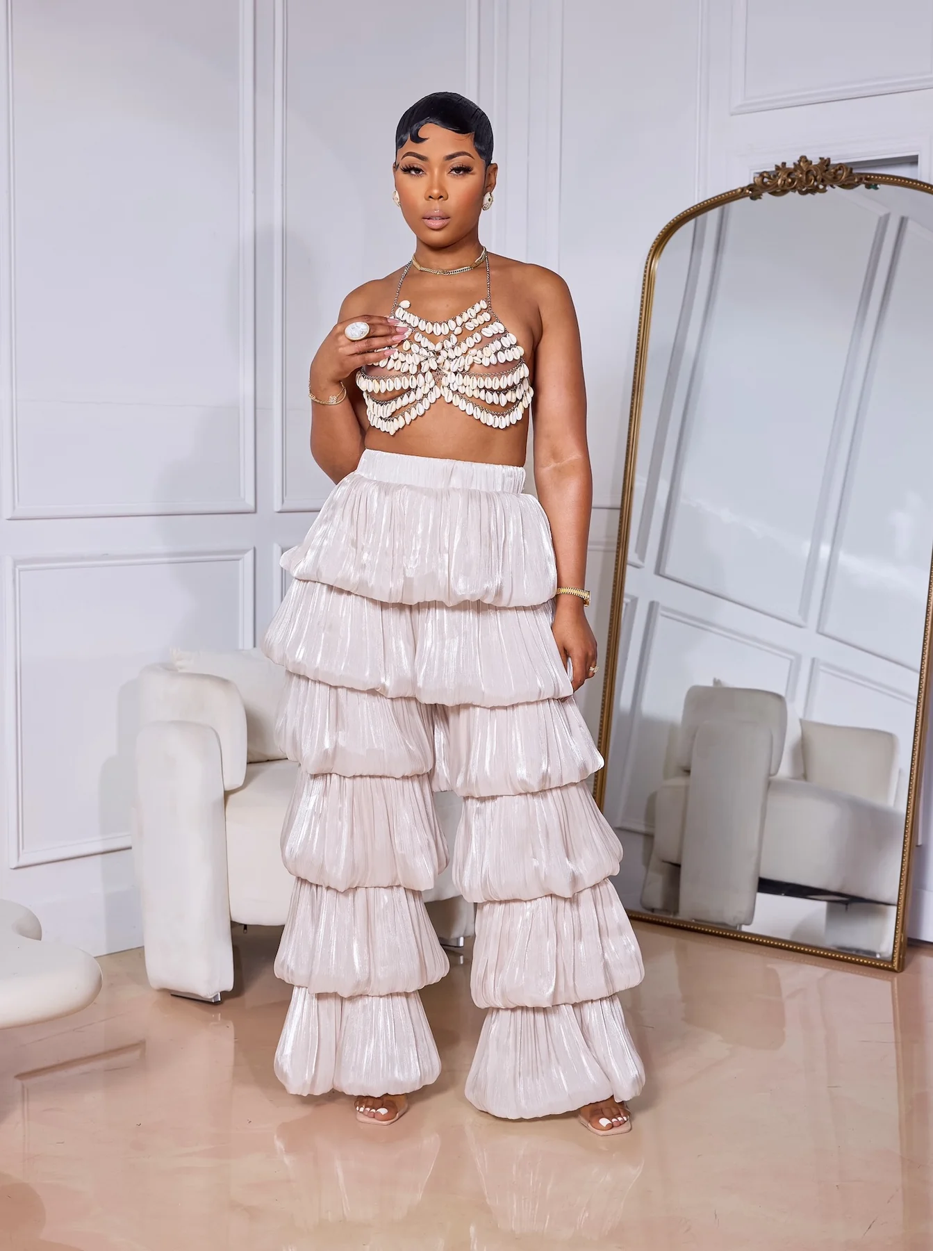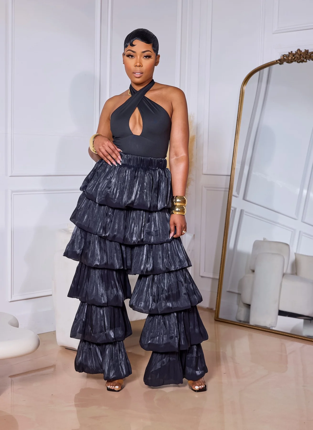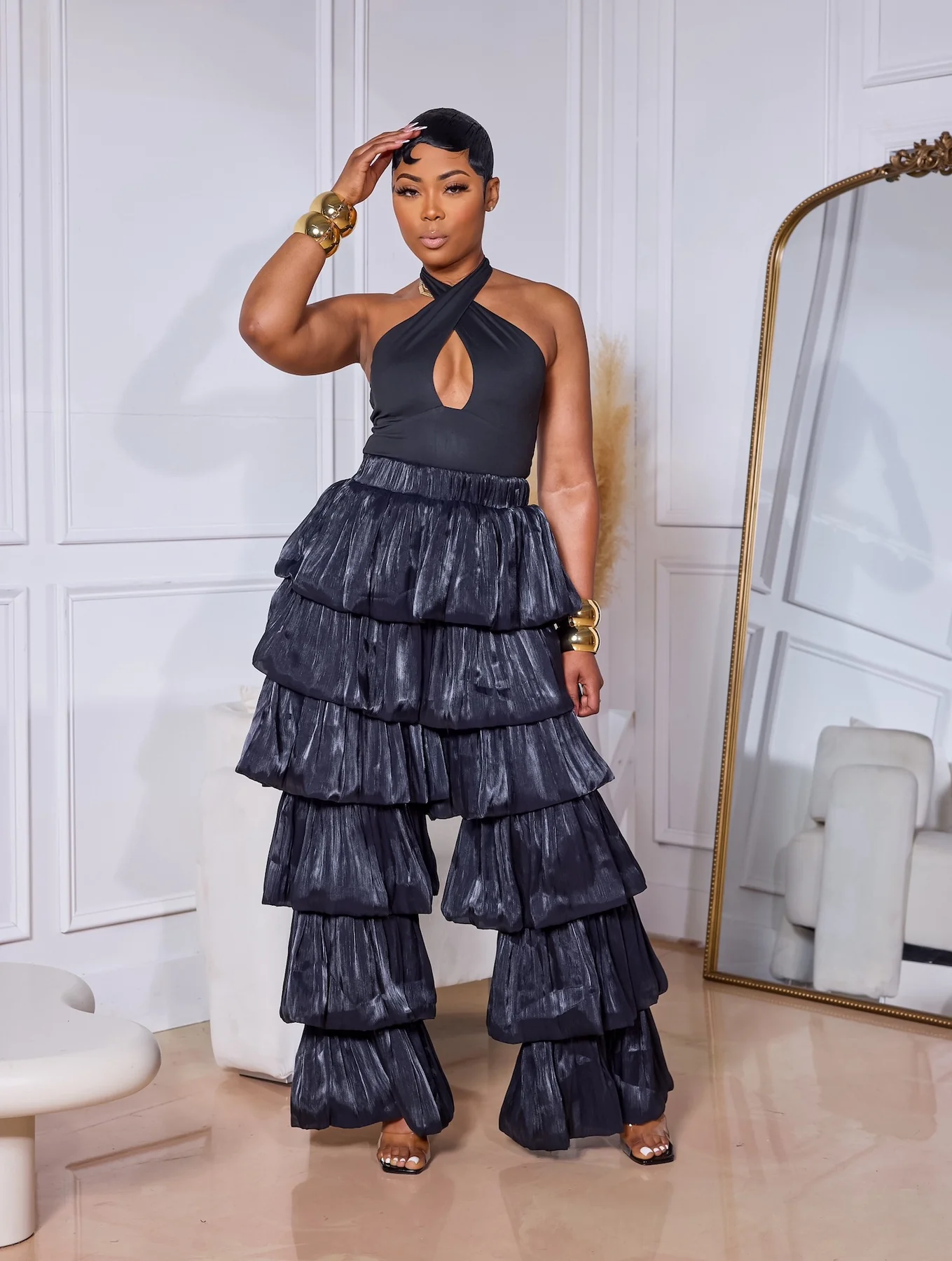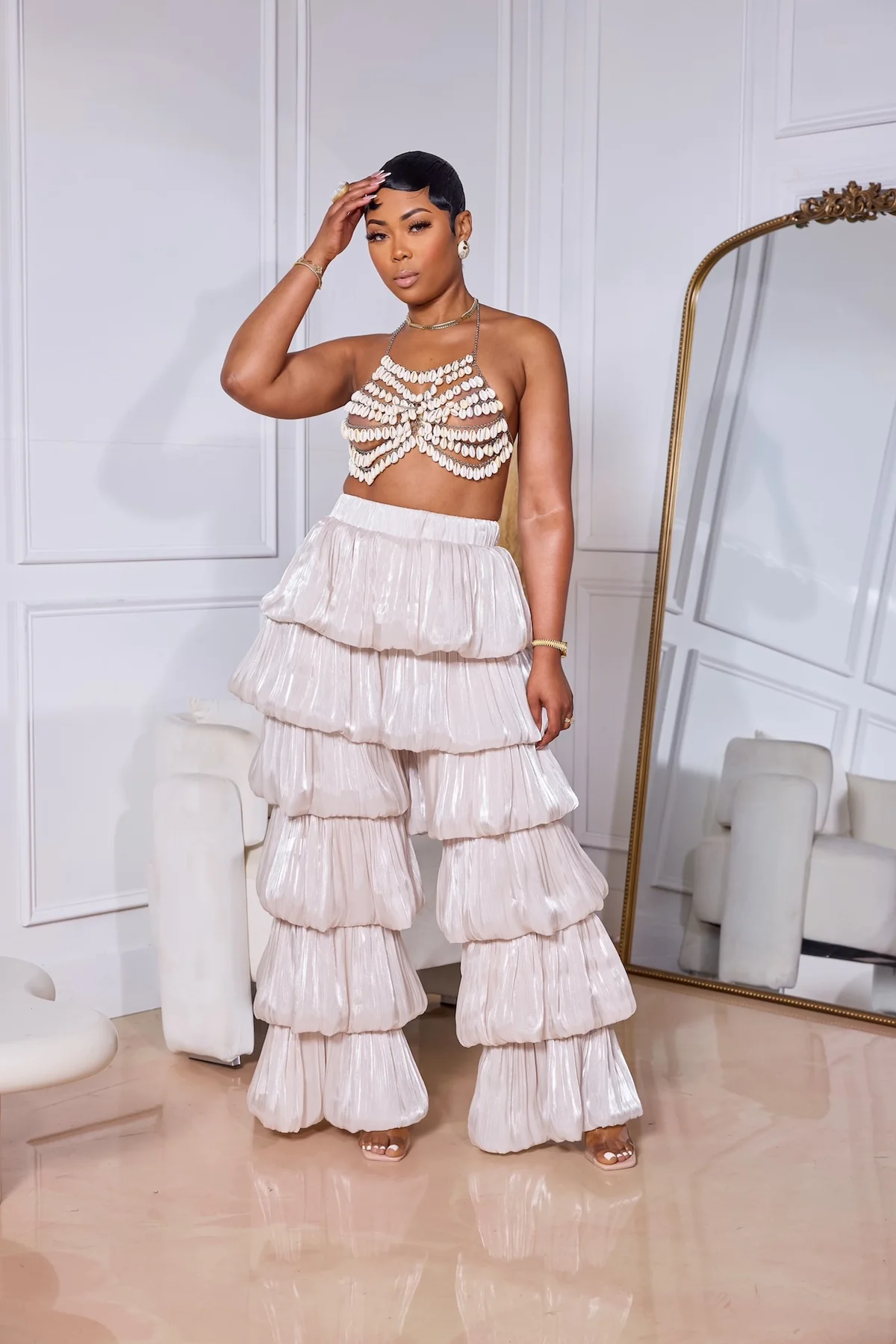 These Bidi Bidi Bom Bom pants bring salsa vibes to your wardrobe with their stylish layered stacked design. Featuring a high-waisted elastic waistband and a convenient side zipper closure, they offer a comfortable, secure fit with just the right amount of stretch for easy movement. Perfect for dancing or making a bold statement wherever you go.