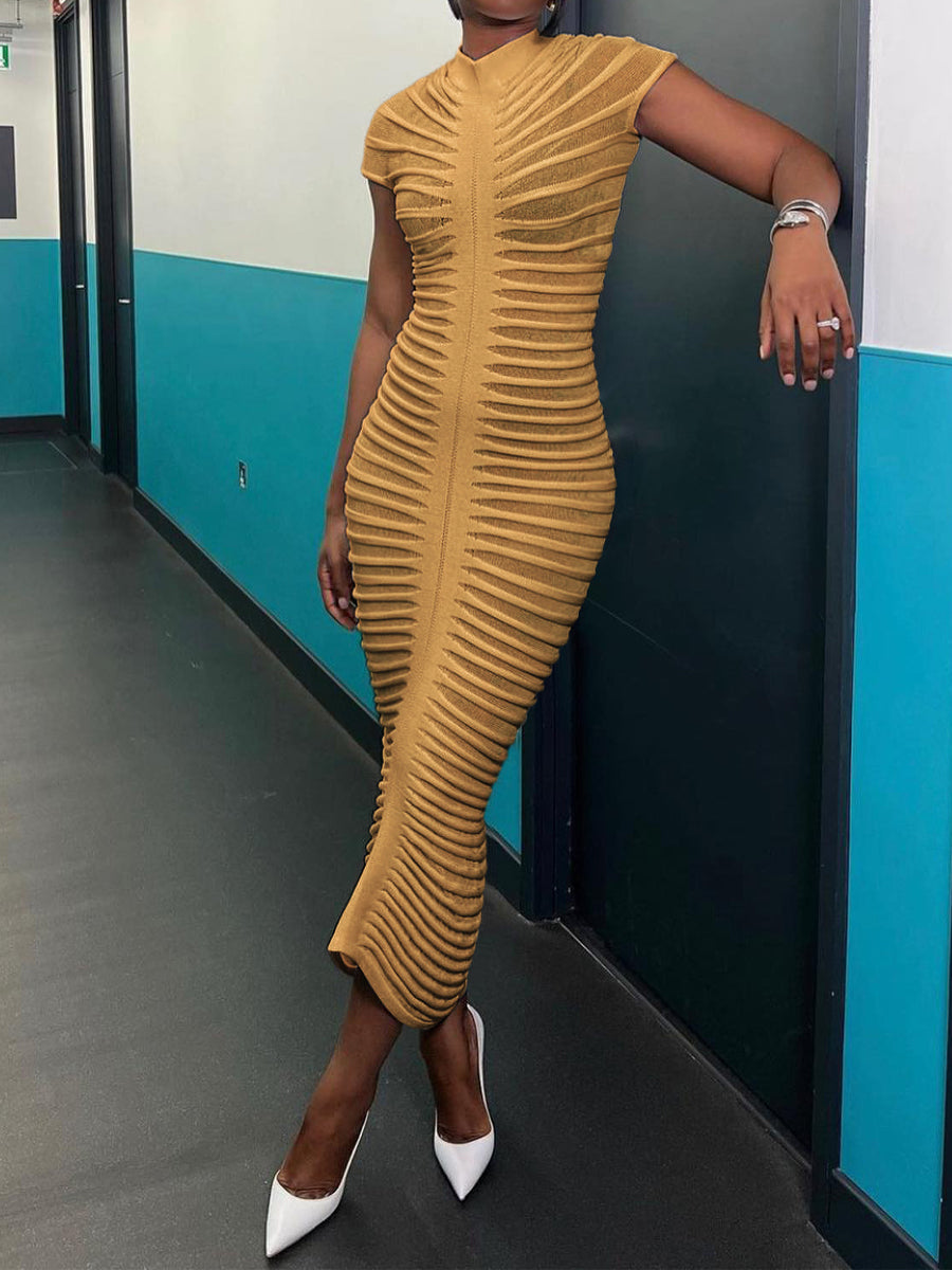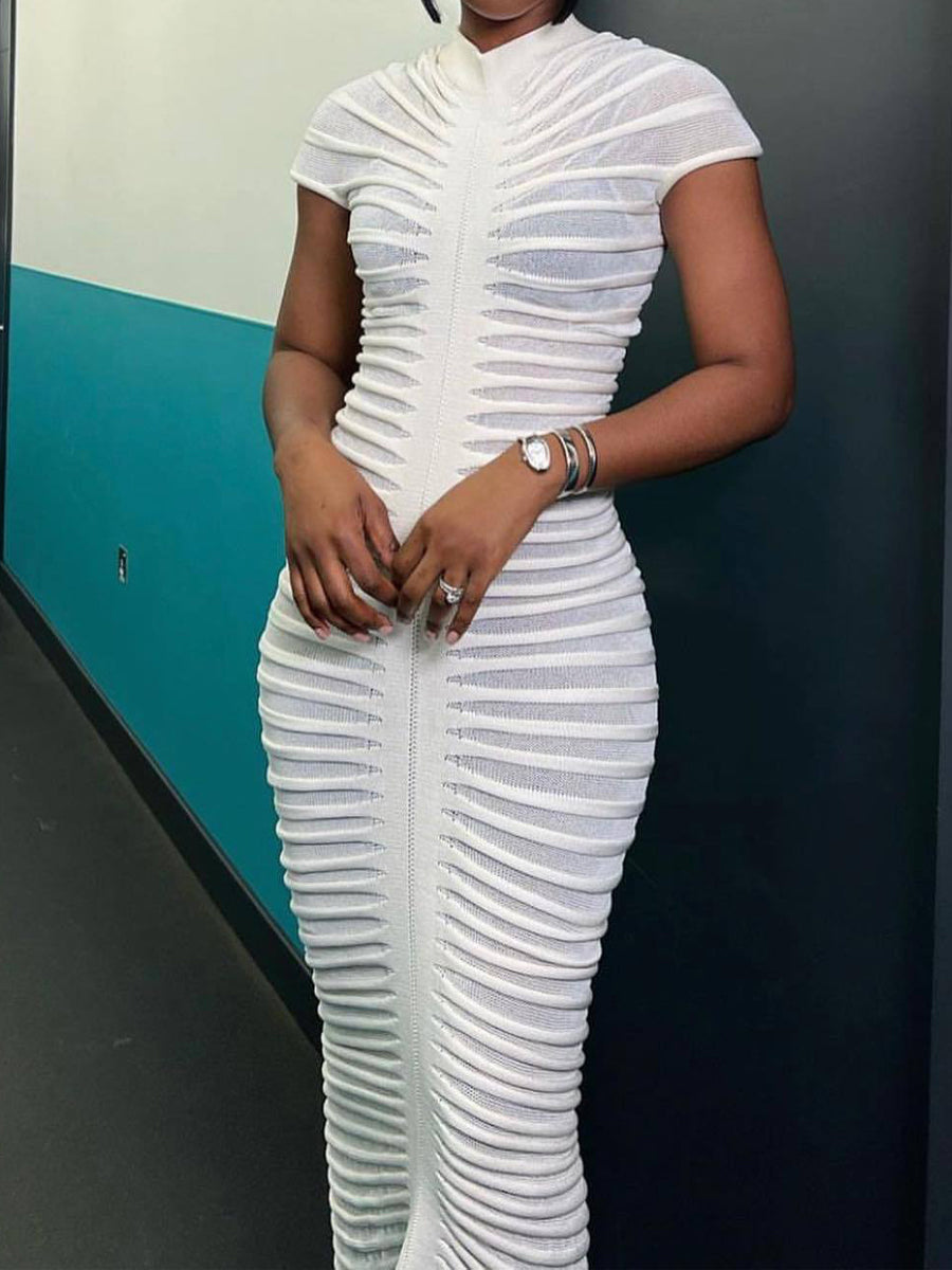 Fashion Short Sleeve Round Neck Sexy Knitted Dress