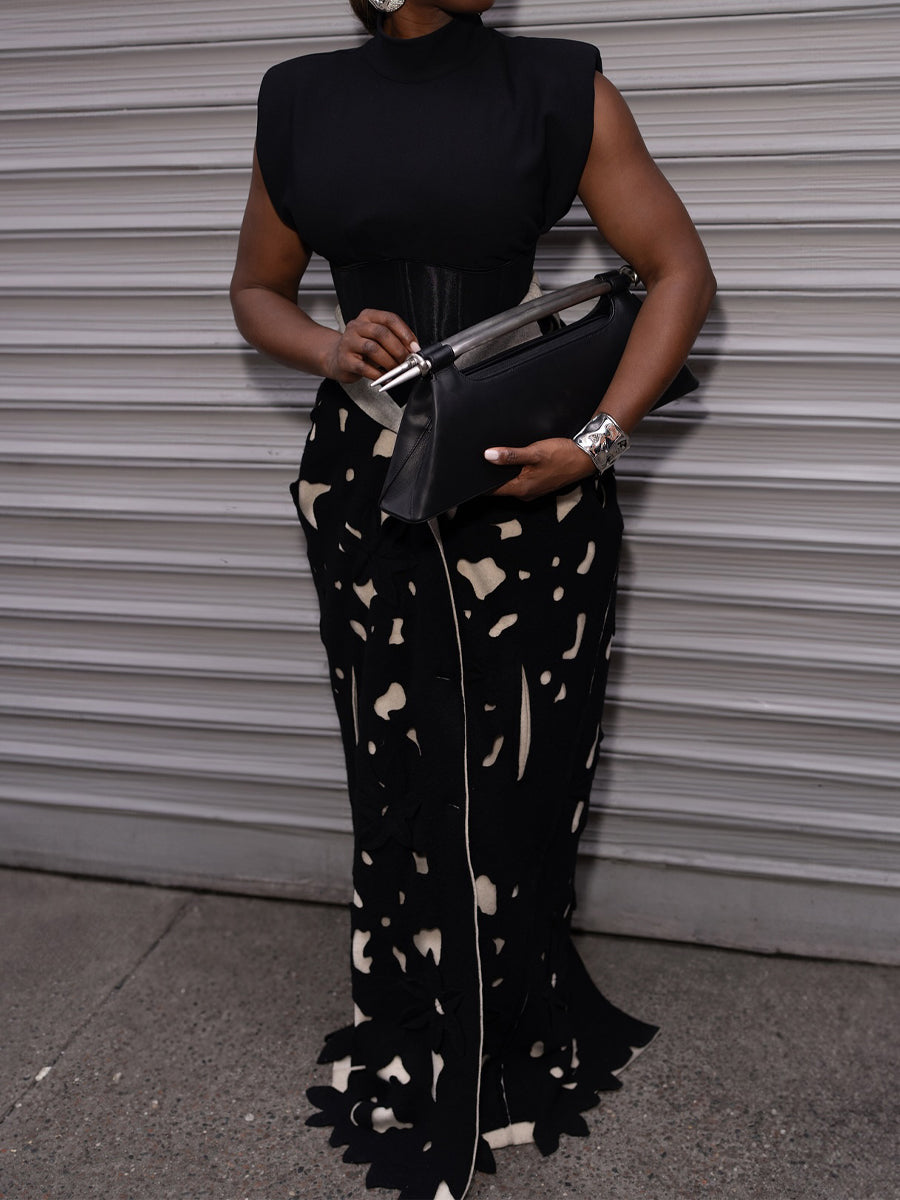 Floral Appliqués Single-breasted Cutout Coat