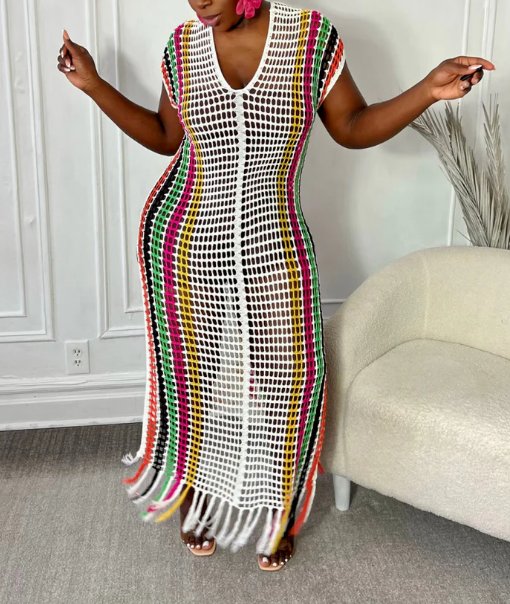 Grid Color Tassel Dress