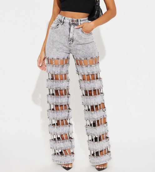 Hole Cut-Out High-Waist Straight Jeans