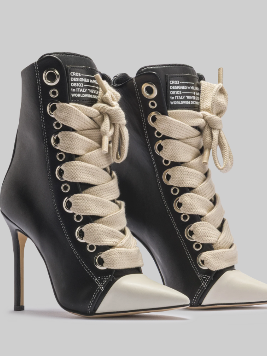 Leather Large Lace Point-Toe Pumps