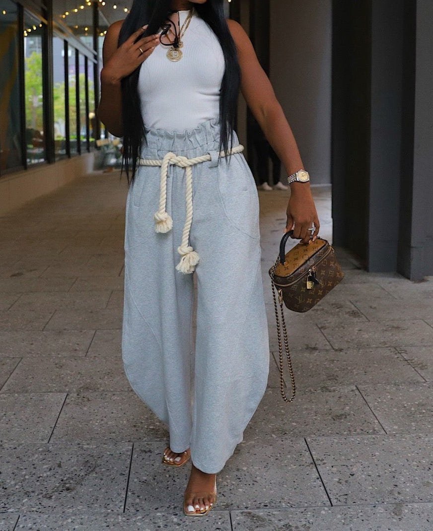 Beautifully constructed harem grey joggers with Rope detailing. True to size with great stretch. Model is wearing a size and is a size 2
