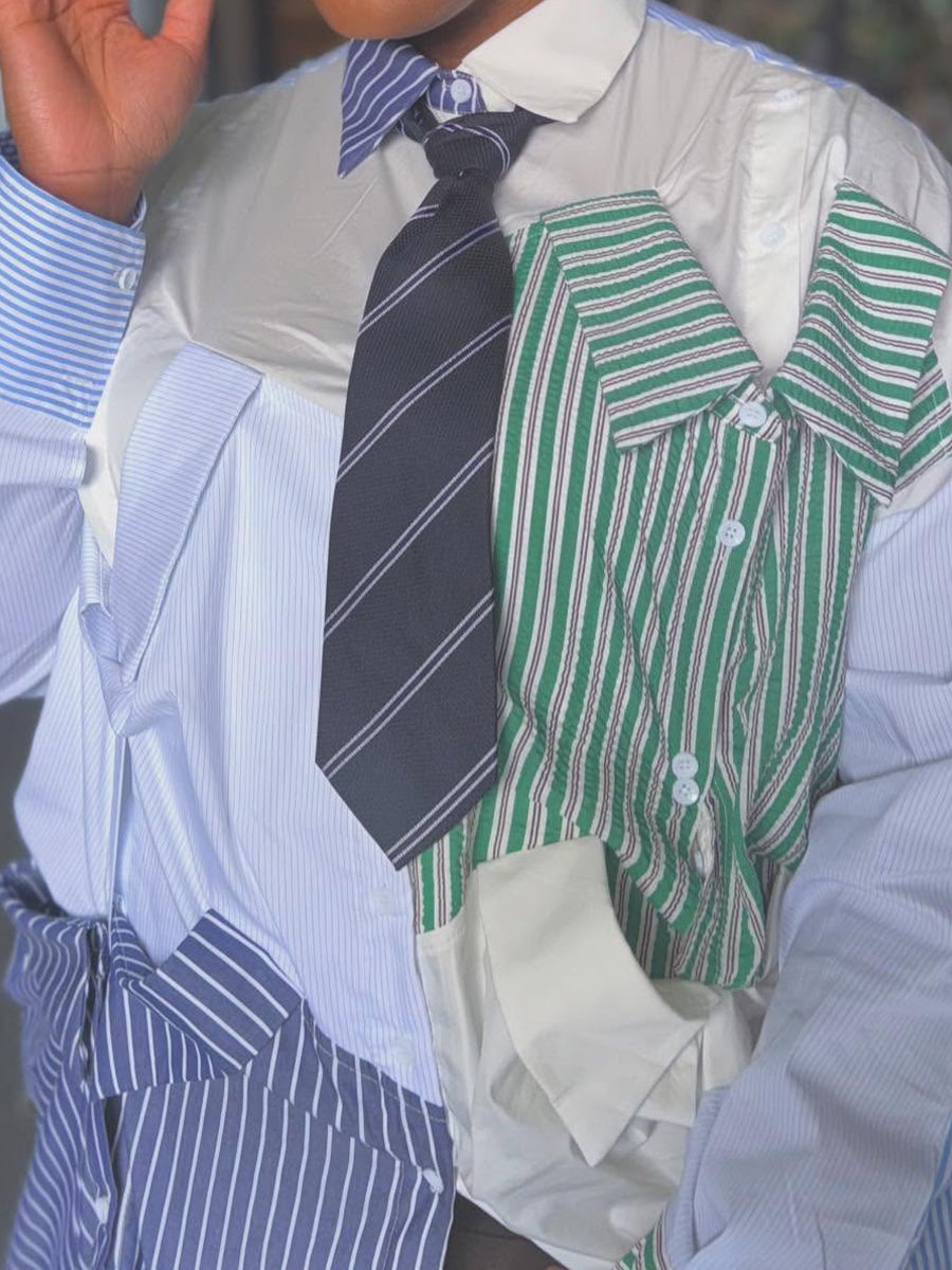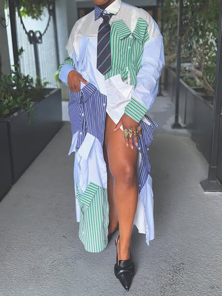 Striped Print Color Block Maxi Dress