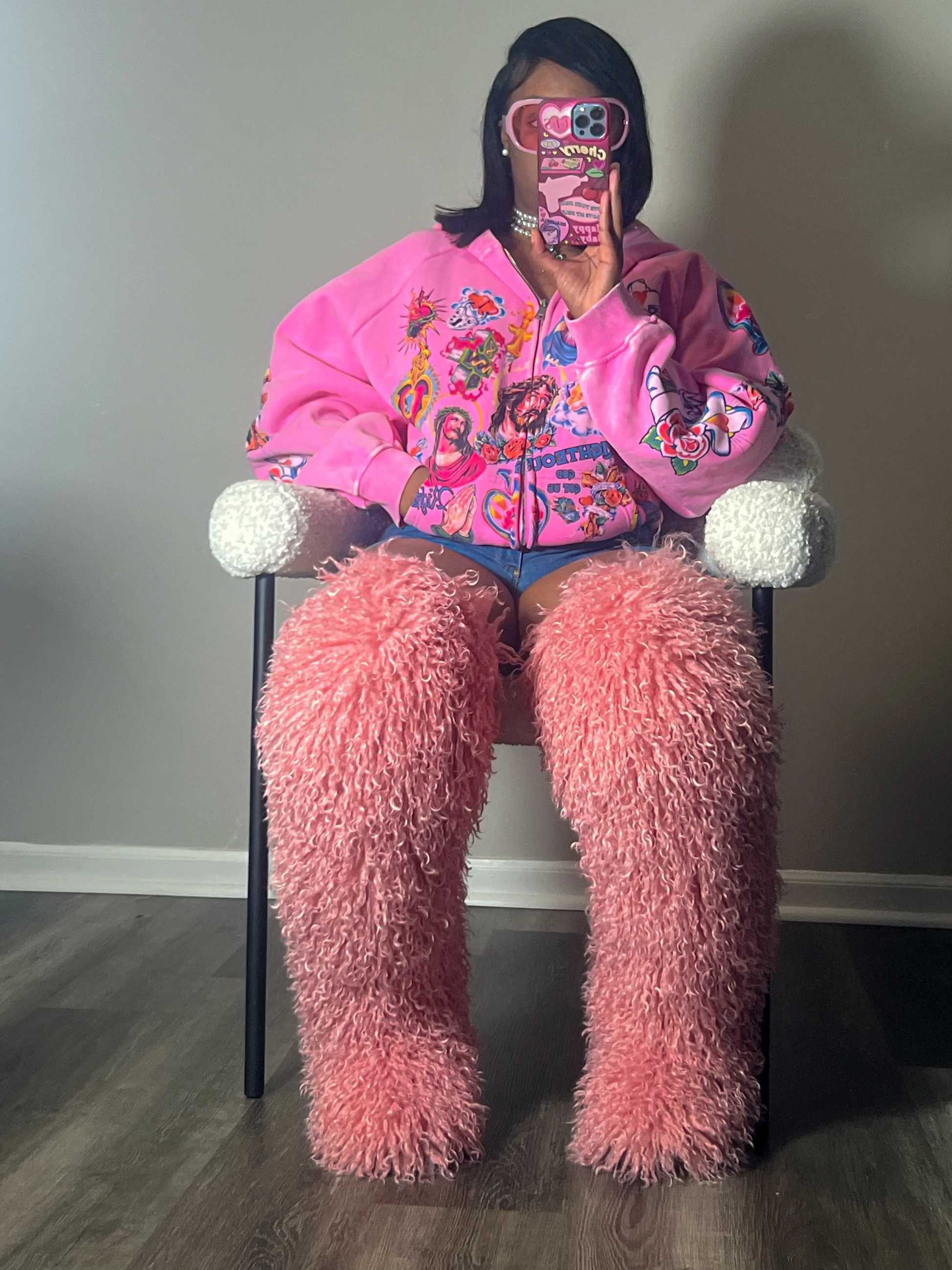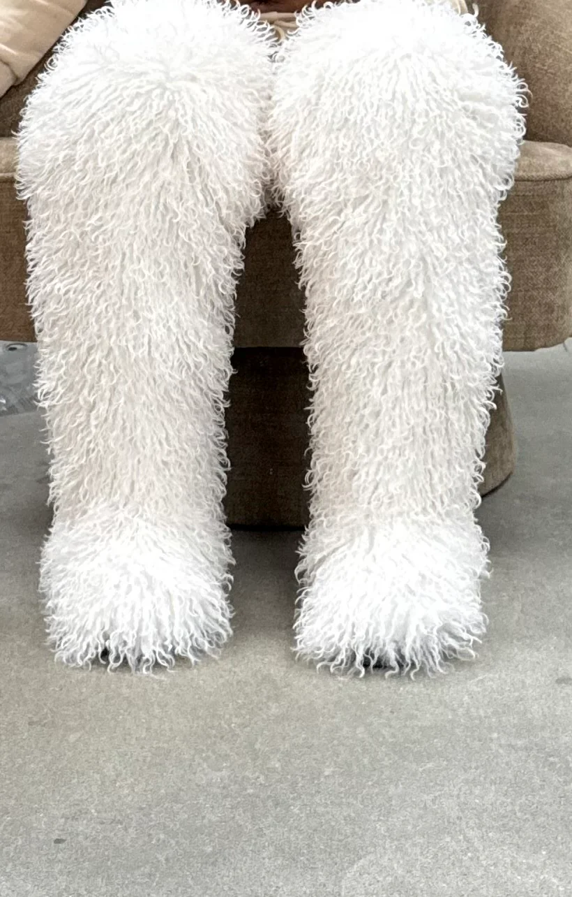 Model is 5'4", 150 lbs — has room to stretch the boot for a thicker thigh fit
